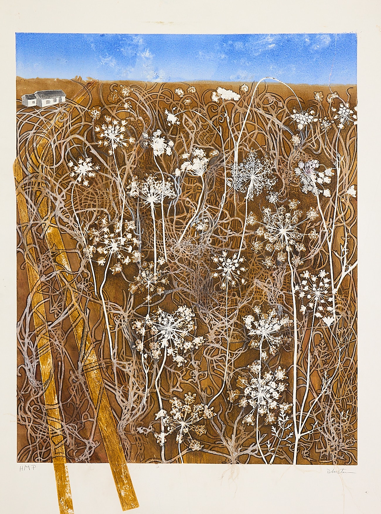 I’ve never met a media I didn’t like! I have worked in both 2D, lots of collage and mixed media, and 3D including clay, plaster, wax, metal and found objects. Now I am working exclusively with printmaking. There are many ways to make a print. My favorite is collagraph because I work in both 2D and 3D. First I create a low relief with cardboard and different textured materials. This becomes the printing plate. Next it is inked and rolled through the printing press with a piece of damp heavy paper. The resulting print is a record of all the colors, layers and textures that have been pressed into the paper. To read more about how I create the prints, click on About The Art.